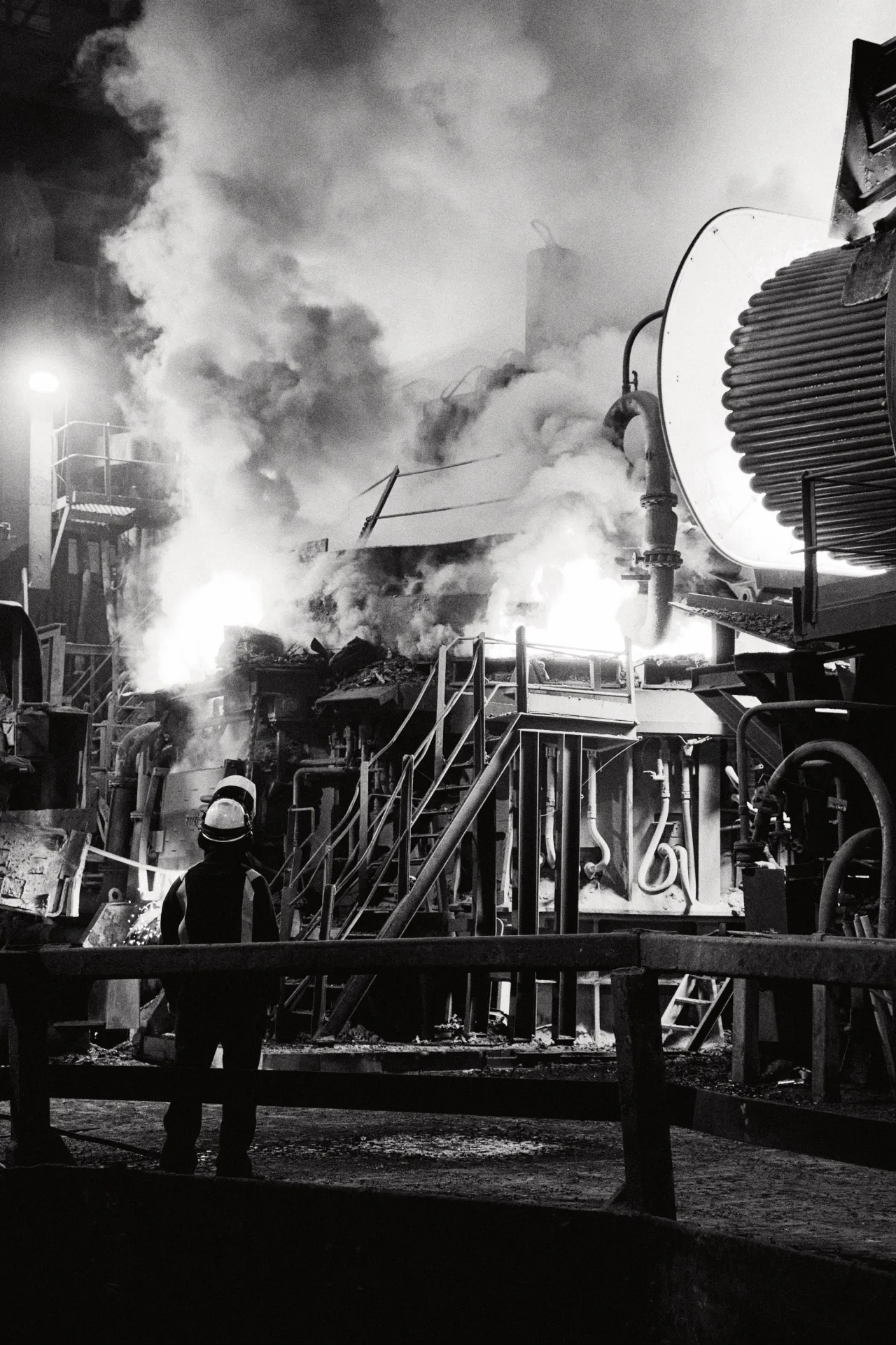 Liberty Speciality Steels Electric Arc Furnace in Rotherham"You're in for a good one today boys." It had rained all week and the scrap metal pile outside had been getting wet. When the steel is dumped into the white hot crucible for the arc furnace, any water on the steel turns to steam in a flash and expands creating a huge explosion of hot metal sparks as high as the ceiling.